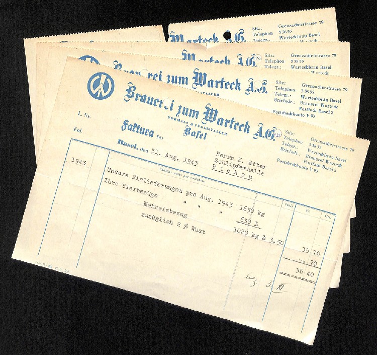 Zusatz: Eislieferungen 1943 Kategorie: Dokumente Unterkategorie: Lieferscheine/Quittungen/Rechnungen Anzahl Exemplare in Sammlung: 1 Datierung: 1943 Hersteller: Material: Papier Masse: Masse Zusatz: Beschreibung: Quittungen für Eislieferungen im Jahre 1943, Schlipferhalle, Riehen Sprache: DEU Sammlung: Verein Warteck Museum Wert: 5 Inventar-Nr: 110143080 Hinweise/Korrekturen/Ergänzungen zu diesem Gegenstand: » Sende ein Mail |