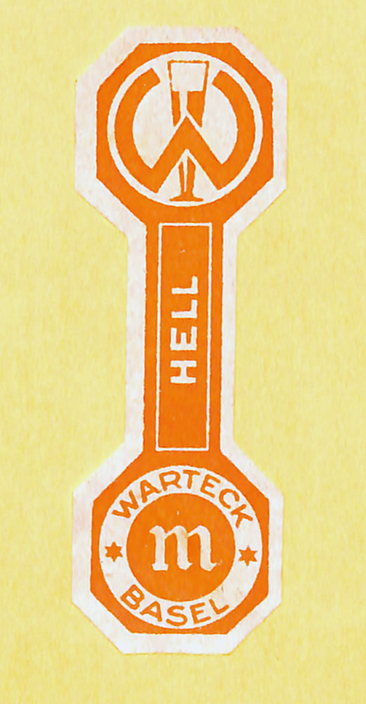 Zusatz: Siegel-Etikette Kategorie: Etiketten Unterkategorie: vor 1935 Anzahl Exemplare in Sammlung: 1 Datierung: um 1928 Hersteller: Material: Papier Masse: Masse Zusatz: Beschreibung: Siegel-Etikette für Bügelflasche. Warteck Hell, Warteck Basel. Abfüllung m. Sprache: DE Sammlung: Verein Warteck Museum Wert: 40 CHF Inventar-Nr: 20161104 Hinweise/Korrekturen/Ergänzungen zu diesem Gegenstand: » Sende ein Mail |
