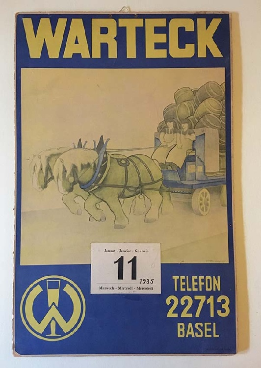 Zusatz: Abreisskalender Kategorie: Kalender Unterkategorie: Abreisskalender Anzahl Exemplare in Sammlung: 1 Datierung: 1935 Hersteller: Wiemken & Co, Basel Material: Karton Masse: Höhe: 520mm Breite: 330mm Masse Zusatz: Tel: 3.38.55 Beschreibung: WARTECK Jahreskalender 1935 Signiert: F.Schott Sprache: Sammlung: Verein Warteck Museum Wert: 100 CHF Inventar-Nr: 260119350 Hinweise/Korrekturen/Ergänzungen zu diesem Gegenstand: » Sende ein Mail |