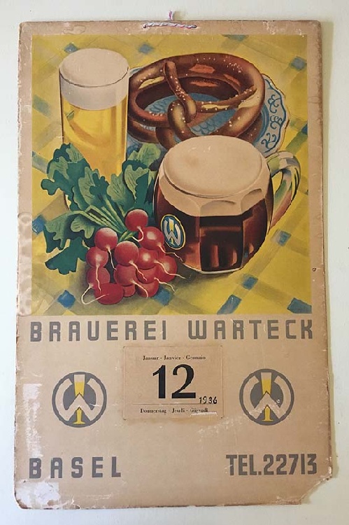 Zusatz: Abreisskalender Kategorie: Kalender Unterkategorie: Abreisskalender Anzahl Exemplare in Sammlung: 1 Datierung: 1936 Hersteller: Fritz Bühler Material: Karton Masse: Höhe: 520mm Breite: 330mm Masse Zusatz: Tel: 3.38.55 Beschreibung: BRAUEREI WARTECK Jahreskalender 1936 Fritz Bühler Sprache: Sammlung: Verein Warteck Museum Wert: 100 CHF Inventar-Nr: 260119360 Hinweise/Korrekturen/Ergänzungen zu diesem Gegenstand: » Sende ein Mail |